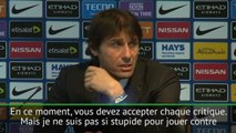 Chelsea s'est incliné sur la plus petite des marges lors de son déplacement sur le terrain du leader Manchester City dans le choc de la 29e journée de Premier League (0-1). L'entraîneur italien des Blues Antonio Conte était visiblement agacé des critiques faites par les experts et commentateurs du Championnat anglais à son sujet et celui de son équipe.