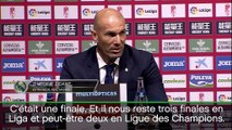 Victorieux à Grenade (4-0), Zinedine Zidane ne s'en cache pas : le Real Madrid ne peut pas se permettre le moindre faux pas jusqu'à la fin à cause de la pression mise par le Barça en tête du classement. Mais le coach madrilène est serein et peut compter sur un banc de grande qualité comme samedi soir (doublés de james et Morata).