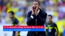 Diego Simeone qui a remporté sa 300e victoire avec l'Atlético Madrid mardi soir, fête ses 9 ans sur le banc des Colchoneros ce 23 décembre. Retour en chiffres sur le parcours et les idées mises en place par El Cholo depuis son arrivée à Madrid en 2011.