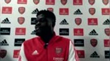 Thomas Partey était présenté ce mardi à la presse anglaise. Le nouveau joueur d'Arsenal s'est dit ravi de rejoindre la formation londonienne, qu'il espère aider à retrouver le haut du tableau en Premier League.