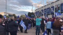 Rassemblés devant le King Power Stadium, les supporters de Leicester ont célébré la victoire de leur équipe en finale de la FA Cup aux dépens de Chelsea. Les Foxes ont remporté ce samedi la toute première Coupe d'Angleterre de leur histoire.