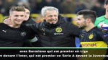 Lucien Favre est un homme heureux ! L'entraîneur du Borussia Dortmund se félicite de la qualification de son équipe en huitièmes de finale de la Ligue des Champions, en s'extirpant d'un groupe relevé avec le FC Barcelone et l'Inter.