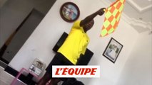 L'arbitre Frank Komba signale des hors-jeu dans son salon. - Foot - WTF