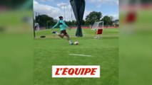 VIDEO FOOT - Le défenseur des Reds a réalisé une petite prouesse à l'entraînement, en envoyant le ballon dans les filets d'un but placé loin devant lui.