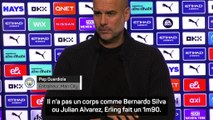 Interrogé sur la façon de jouer de son équipe avec la présence ou non d'Erling Haaland à la pointe de l'attaque de Manchester City, Pep Guardiola estime que le Norvégien peut faire le travail de n'importe quel de ses attaquants notamment en terme de pressing mais qu'il doit être soutenu par ses coéquipiers.