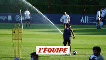 VIDEO FOOT - L'attaquant parisien, qui revient d'une blessure à la cheville droite, s'est entraîné ce samedi soir pour la première fois avec le ballon. Il a même frappé au but.