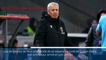 Après l'élimination de Nice en 32es de finale de la Coupe de France au Puy (N) (0-1, samedi), les dirigeants azuréens ont décidé de se séparer ce lundi de Lucien Favre, leur entraîneur arrivé en juin dernier. Didier Digard dirigera l'équipe mercredi contre Montpellier. Plus tôt dans la journée, Strasbour, 19e de Ligue 1, avait également mis à pied son entraîneur Julien Stéphan.