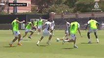 Karim Benzema continue sa préparation avec le Real Madrid, et continue de distiller des jolis gestes à l'entraînement. Petit florilège.